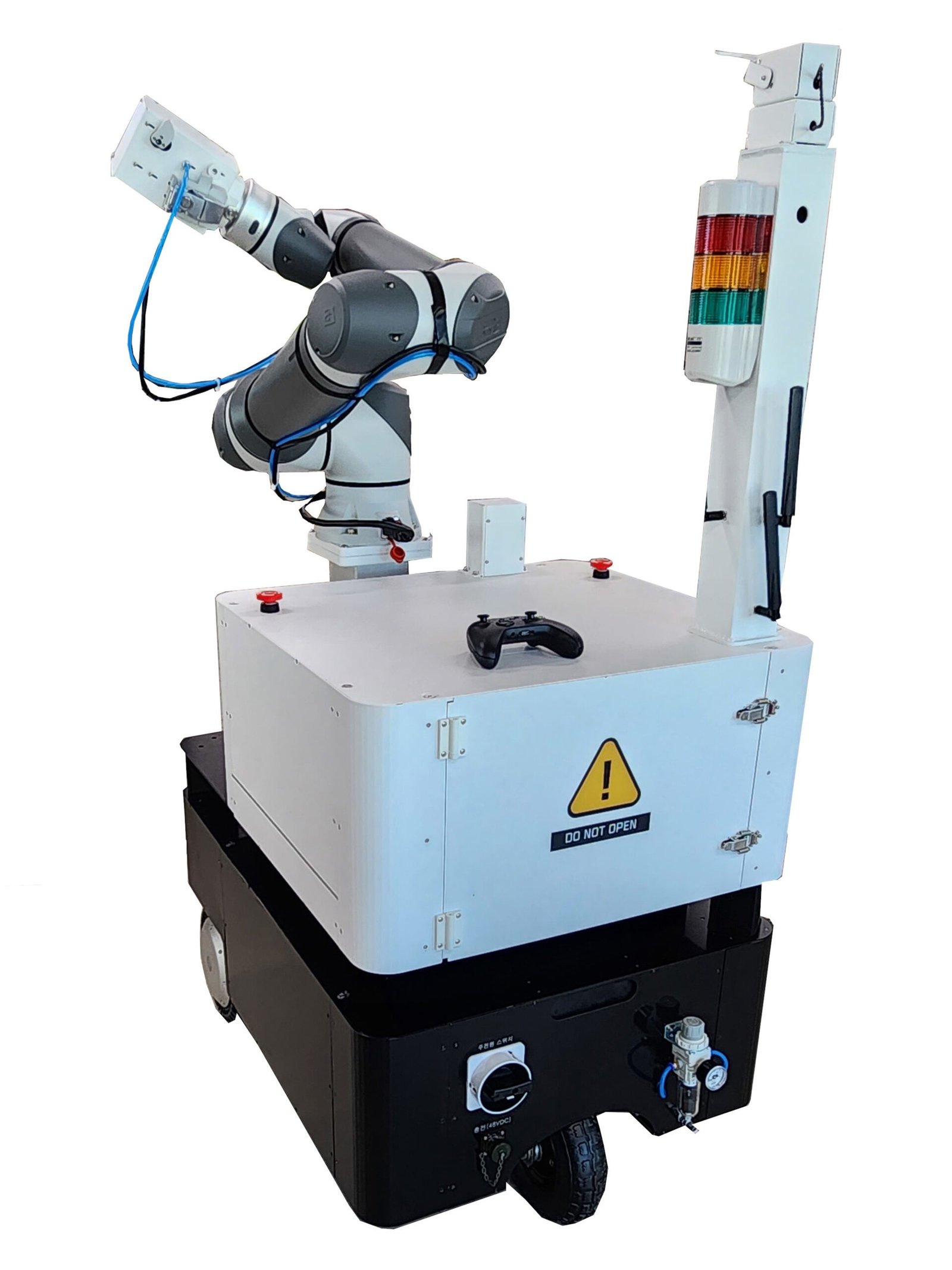 ELMobileBot은 6축 협동 로봇과 전용 리프트를 장착할 수 있는 AMR(Autonomous Mobile Robot)입니다.