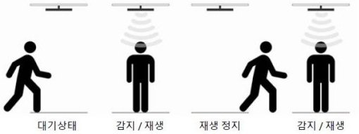모션감지 오디오 제어기에 있는 모션감지센서에 움직임이 감지되면 저장된 음원을 재생합니다.